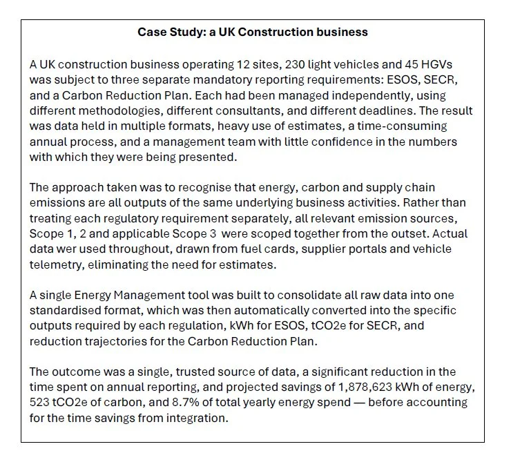 Whereas ESOS, SECR and CRP, do not provide a single way of delivering the requirement, EPCs do provide a more structured procedure to follow and output to generate.